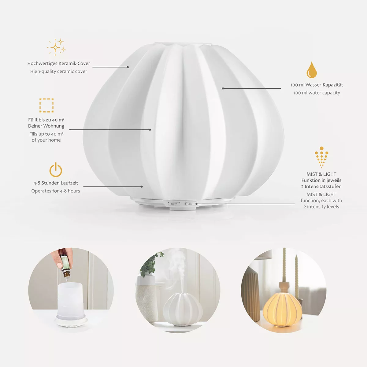 – LED: Warm yellow light